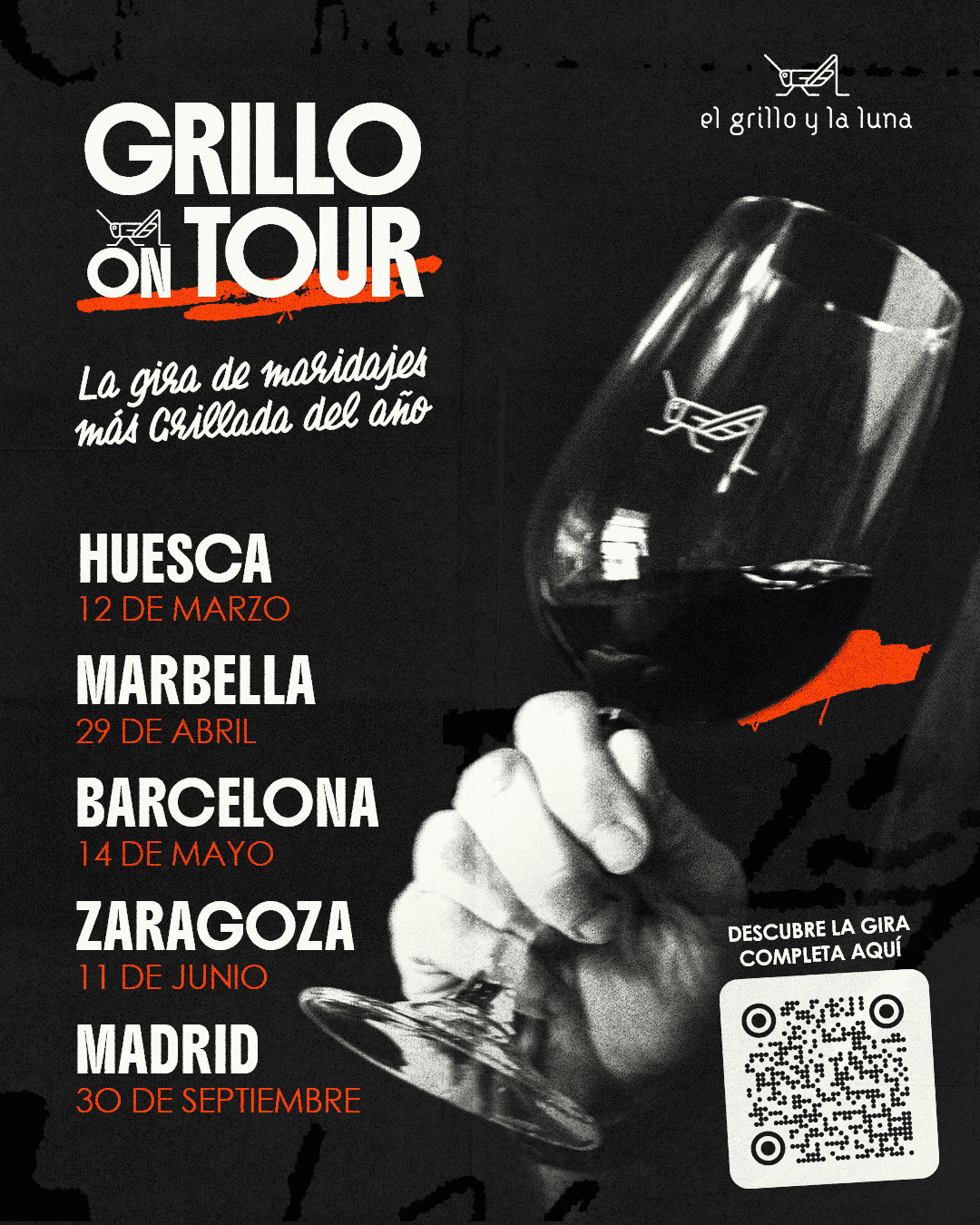 En cada destino se ha preparado una cena maridaje muy especial para los amantes de los vinos del Grillo y la Luna. La acción arranca el próximo 12 de marzo en Huesca y finaliza el 30 de septiembre en Madrid.