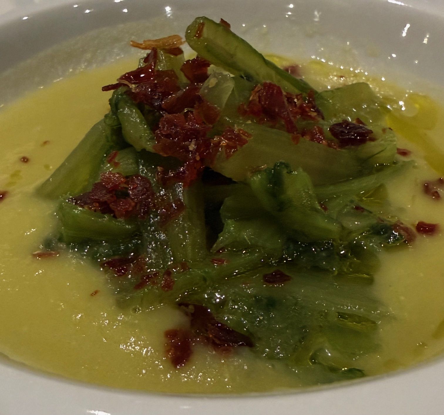 Eli Navascués con sus tíos Óscar y Belén, junto a su padre Javier y todo el equipo de La Rinconada de Lorenzo, fueron los anfitriones perfectos de esta mesa castellana. Nos sorprendieron con reinterpretaciones de algunos de sus platos más icónicos, como las manitas o la borraja, transformadas en un bombón de manitas —altamente adictivo— o unas borrajas con crema de puerros para enmarcar.